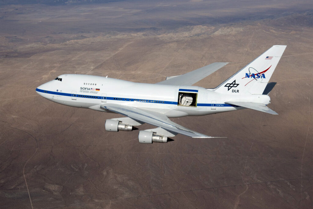 SOFIA selecciona al B747SP. Se trata de una versión acortada del B747-100 cuya modificación en la sección trasera del fuselaje permite instalar un telescopio infrarrojo de 2,7 metros. NASA se encarga de la adquisición y modificación de la aeronave, mientras que DLR de la fabricación del telescopio. El montaje final se realiza en Waco, Texas, y requiere la colaboración de Airbus para llevar el telescopio en el A300-600ST “Beluga”.