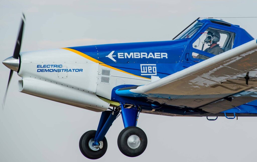 El proyecto de vuelo con propulsión eléctrica utiliza el sistema desarrollado por WEG en base a un conjunto de baterías financiadas por EDP en un EMB 203 Ipanema. Esta aeronave se trata de un avión diseñado para operaciones agrícolas como fumigación de campos y otras operaciones semejantes. En 2004, se convierte en la primera en el mundo en ser certificada y producida en serie para volar con combustibles sostenibles de aviación (SAF) a base de etanol.