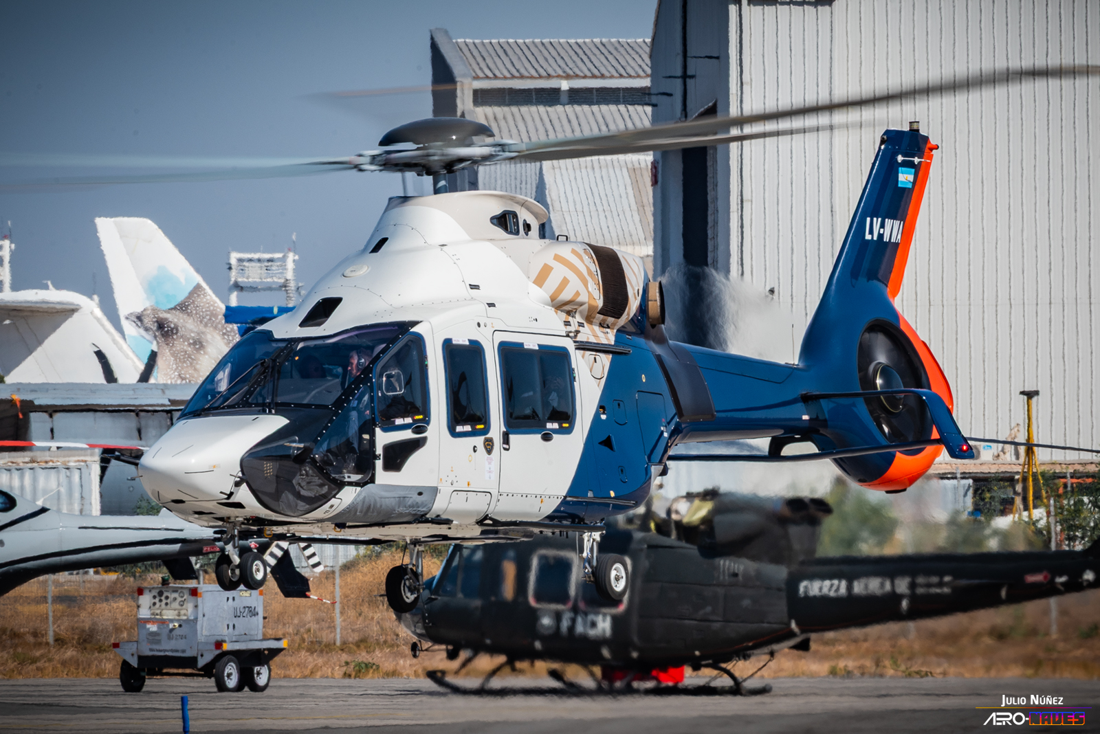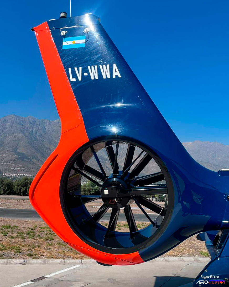 Realizamos un walkaround completo alrededor de la máquina, observando cada detalle mientras recibíamos una charla de parte del piloto. Entre las innovaciones del diseño destacan el rotor de cola del tipo Fenestron con un ángulo de inclinación característico y el estabilizador horizontal con su innovador diseño doble, que forman parte de las soluciones técnicas que diferencian a este modelo.