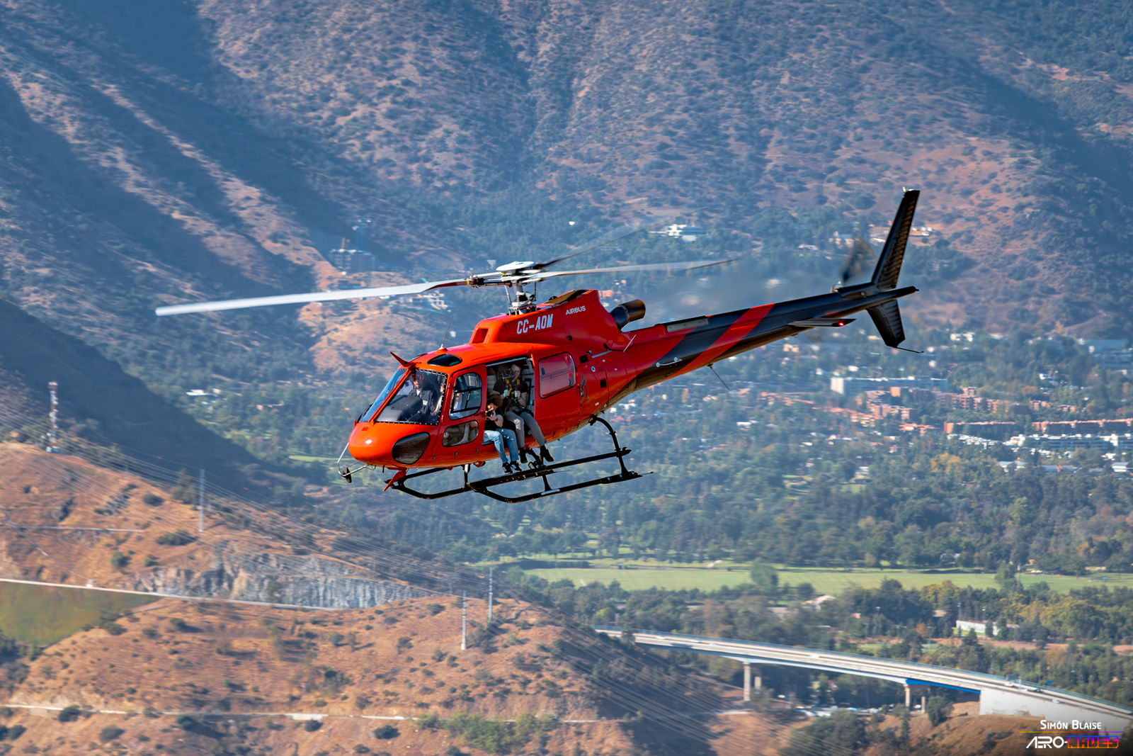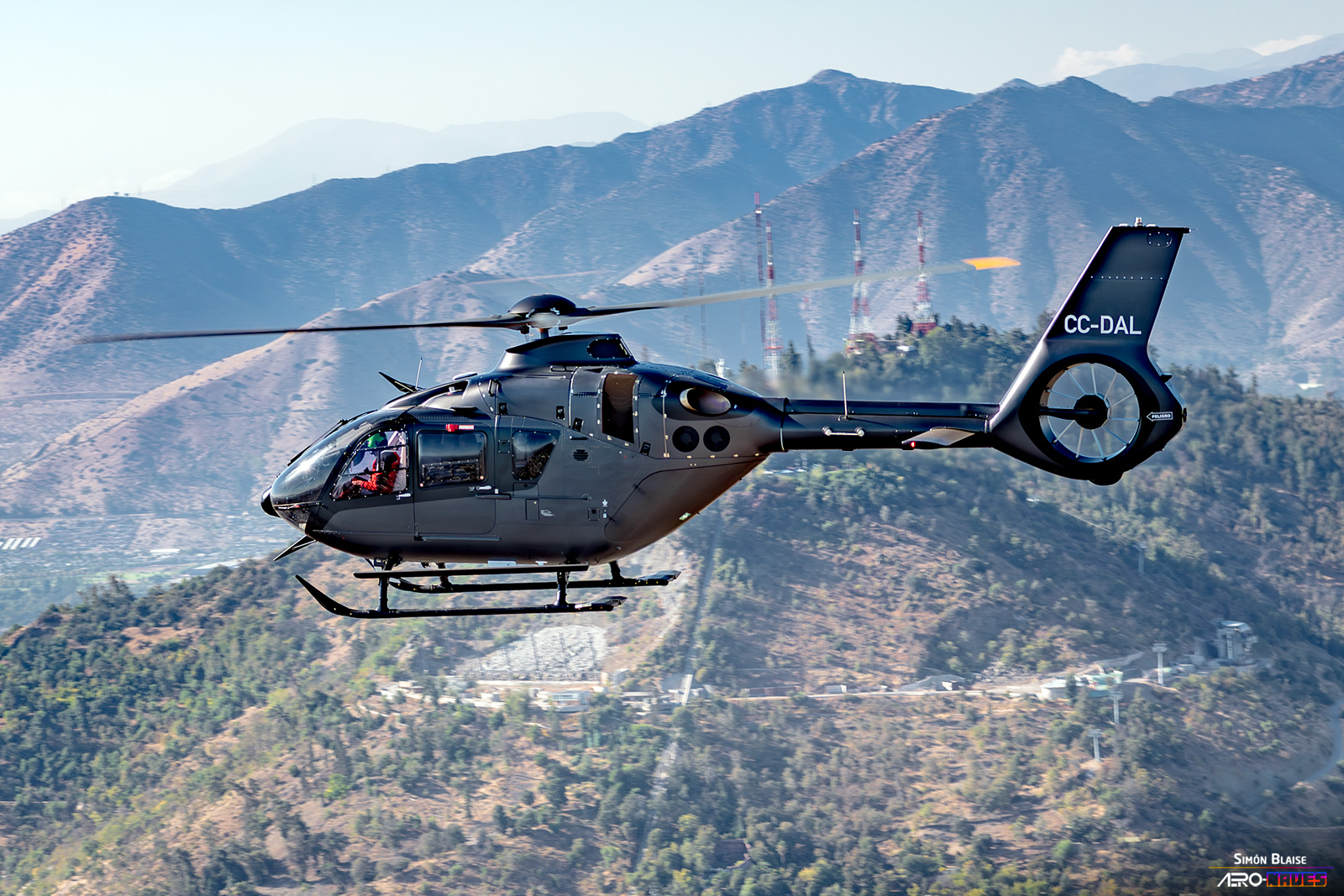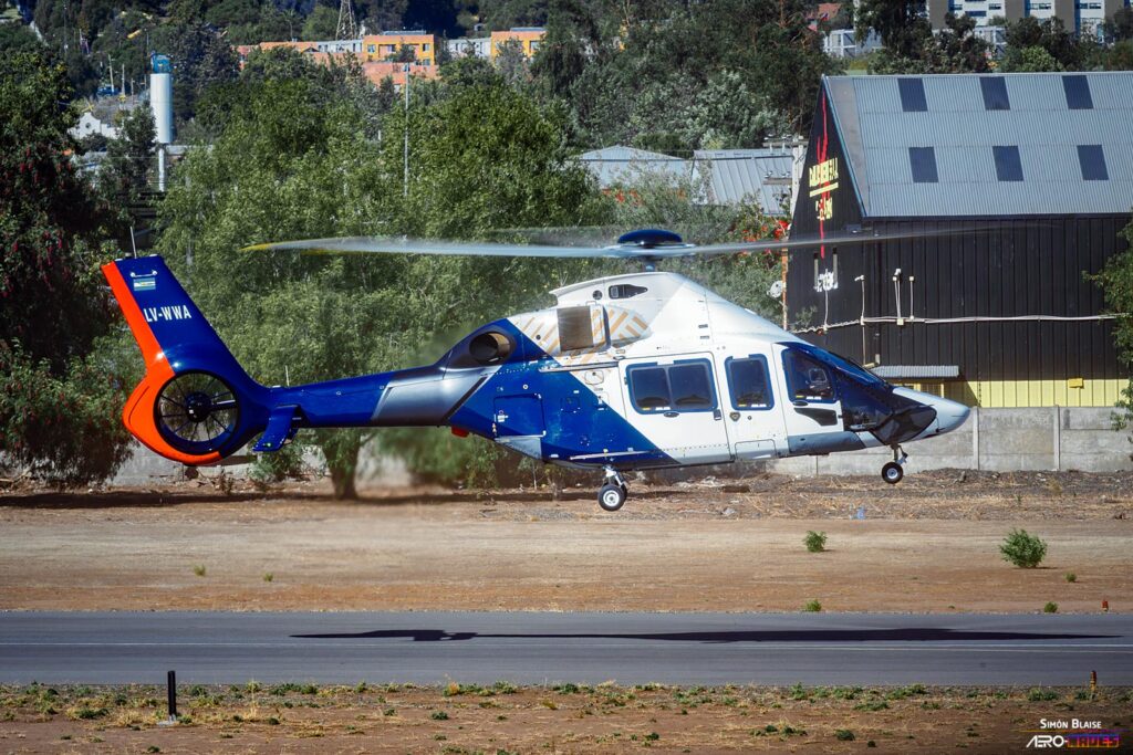 Al despegar, el H160 gana altitud rápidamente y nos ofrece un paseo aéreo sobre los lugares más icónicos de Santiago de Chile. El vuelo formaba parte de una formación integrada por los helicópteros H160, H135, H130 y H125, que se dirigían hacia FIDAE 2026, mientras realizaban una sesión fotográfica aérea.