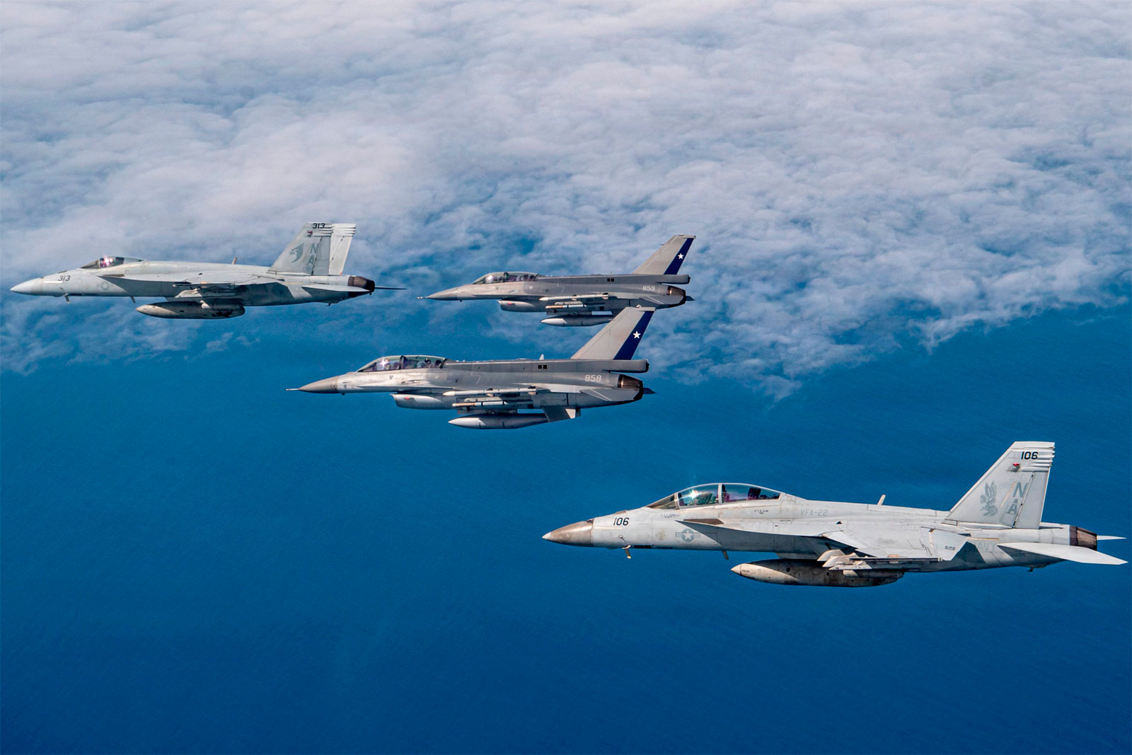 El ejercicio Blue Sky VII fue una de las principales actividades aéreas desarrolladas por la Fuerza Aérea de Chile en conjunto con la US Navy, en el marco del paso del USS Nimitz por Chile en su despliegue en Southern Seas 2026. Realizado en el norte de Chile, este entrenamiento se centró en misiones de combate aire-aire tanto diurnas como nocturnas, donde cazas F-16 chilenos de los grupos N°3, N°7 y N°8 interactuaron y operaron con aeronaves embarcadas del USS Nimitz, como los F/A-18E/F Super Hornet y los EA-18G Growler.