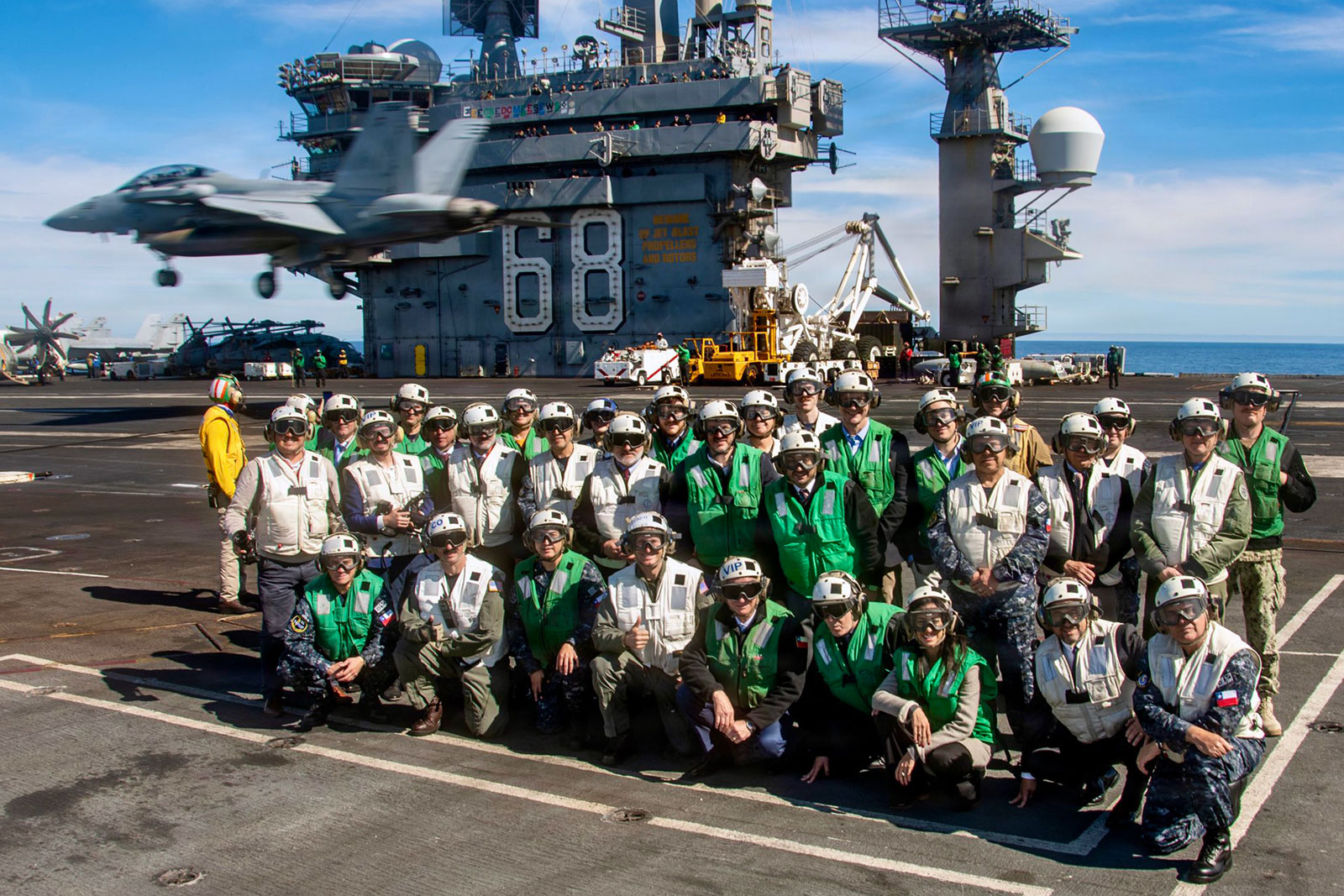 El Presidente de la República, José Antonio Kast, acompañado por diversas autoridades nacionales, realizaron este miércoles una visita oficial al portaaviones USS Nimitz. Entre los asistentes se encontraban el ministro de Defensa, Fernando Barros; el subsecretario de Defensa, Rodrigo Álvarez; el canciller, Francisco Pérez Mackenna; y el embajador de Estados Unidos en Chile, Brandon Judd, entre otras personalidades.