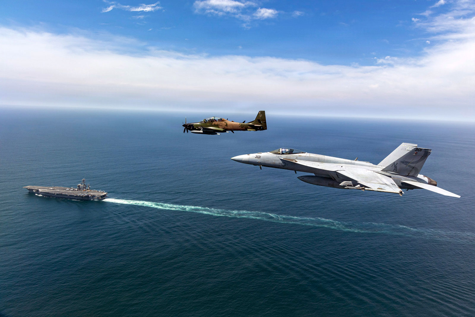 En servicio desde 1975, el USS Nimitz es el portaaviones más antiguo en activo de la Armada de Estados Unidos y la plataforma más emblemática del poder aeronaval estadounidense. Este coloso tiene una eslora de 333 metro y una manga de  76 metros, cuenta con una dotación aproximada de 6.000 tripulantes y puede llevar consigo 90 aeronaves de distintos tipos entre aviones y helicópteros.